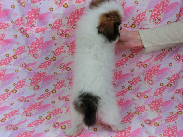| コメント | 父ターボ インターナショナルチャンピオンコンノアの血統 母 エイダ JKCチャンピオン孫 イギリスチャンピオン&JKCチャンピオンユリシスとイギリスチャンピオンアークの血統 イギリス×イギリスの理想的なアウトラインブリードです。 成長時の予想体重は2.5~3.5キロ 現在好ましくないかみ合わせ、ヘルニアはありません。欠点が出てきた際は改めてお知らせいたします。 当犬舎はパピヨン一筋50年の日本で一番歴史のあるパピヨン専門犬舎です。 日本中の国産のパピヨンで当犬舎の血統が入っていない犬は存在しません。 ご見学は大歓迎ですのでどうぞご連絡の上、おいでください。365日年中無休です。 2013年9月1日より「動物の愛護と管理に関する法律」の改正によって、「生体販売時の現物確認・対面販売」が義務規定となりましたので、最低一度は直接犬舎までご来舎いただかなくてはなりません。従いまして今までのようにネットで写真、動画をご覧になっただけではご購入ができなくなりました。これはすべてのブリーダー・ペットショップも例外がありませんので、ご理解、ご協力のほど御願い申し上げます。 手続きに時間がかるため海外への輸出はいたしません。 スタッフの取得資格 (社)JKC 全犬種審査員2名(社)JKC 単犬種パピヨン審査員1名(社)JKC スチュアート1名(社)JKC A級ハンドラー1名 (社)JKC C級ハンドラー1名 (社)日本愛玩動物協会 愛玩動物飼養管理士1級1名 (社)日本愛玩動物協会 愛玩動物飼養管理士2級2名 (学)AIK 認定グルーマーライセンス1名(学)AIK 家庭犬しつけインストラクター1名(社)ICCキャットグルーマーライセンスB級1名 (学)AIK トレーナーライセンス1名 動物の愛護及び管理に関する法律による動物取扱責任者2名 |