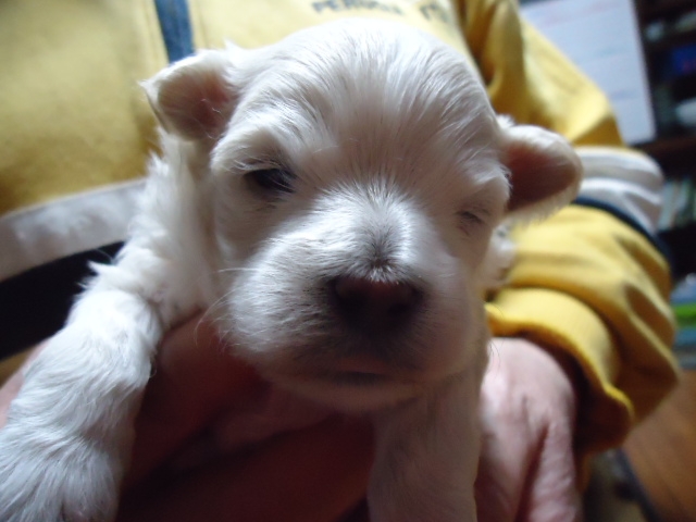 この度ご縁がありまして村島ブリーダーさんから可愛いマルチーズの男の子を譲って頂きました。犬を飼うことは初めてだったのですが2度ほど見学し、アドバイスも頂き、安心して子犬を迎えることができました。何かあれば電話でいつでも相談にのって下さるとのことで心強いです。子犬もとても元気でおトイレもすぐに覚えてとってもいい子です。ありがとうございました。(栃木県 女性)