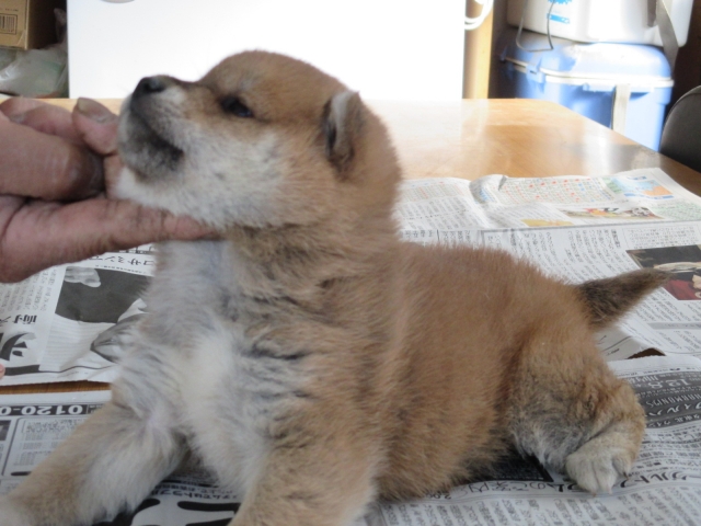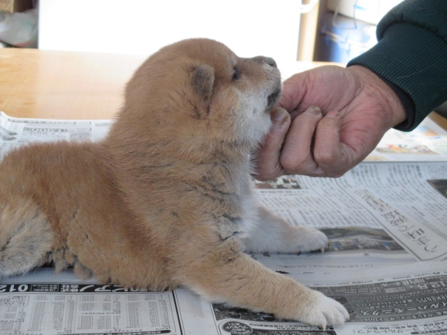 初めて見学で伺った際に、並んで日向ぼっこをしている親犬たちを見て、その時点で高橋さんなら安心だと感じました。事前に希望していたこともあり、母犬と父犬を先に見せていただきましたが、母犬のあまりの人懐こい性格にやられてしまい、実は子犬を見る前に是非譲っていただこうという気持ちになっておりました。 見学の時、譲渡の時といろいろな話をさせてもらい、小さな気付きなども折り込んで教えてもらえるのでやはり柴犬ならこうした専門の方が信頼出来ます。 子犬が我が家に来て二週間が経ち、きょうだいのなかでも一回り小さかったこともあり、やはり成長もやや遅い感じではありますが、母性を刺激された先住犬が頑張って見守ってくれており、予想外ではあるものの家族全員一安心です。 この度は本当にありがとうございました。この子が幸せになれるよう精一杯向き合っていきます。 なお、今後検討されている方への注意事項をひとつだけ書いておきます。問い合わせや見学希望に対しての高橋さんからの返信は電話です。メールでの返信ではありませんので気を付けてください。(宮城県 男性)