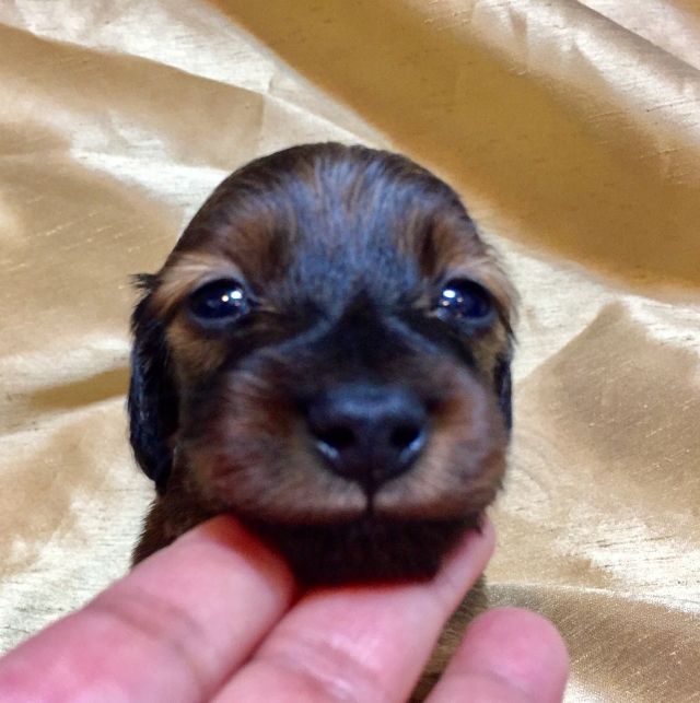 現在カニヘンダックスを飼っており、この度2頭目が欲しいと思っていたところ、細田様の子犬が目に留まりました。以前よりドイツダックスに興味があり、実際お宅に伺って直接子犬また両親犬を見ることができその毛色の素晴らしさに感動しました。またお話しを伺い犬に対する強い思い、深い愛情を持って育てられている事が感じられましたので、その場で即決譲渡させて頂くことになりました。 また、『もし何かありましたら24時間いつでも御連絡下さい』と… 子犬は健康的で元気一杯、人懐っこい性格でした。 ドイツダックスに興味のある方 おすすめのブリーダーさんです!(静岡県 男性)