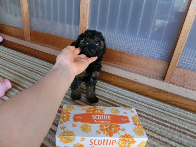 石原様、この度は愛らしいトイプードルの仔犬との素敵なご縁を頂戴しましたこと、心から感謝いたしております。 石原様との幾度のやりとりを重ね、生まれてから私の手元に来てくれるまで、石原様御夫婦の愛情をたっぷり受け、大切に育てていただいた事がよくわかりました。更に先住犬との関係性及び育て方等についてもご助言いただき、大変に助かりました。 また仔犬のお迎えについても、熊本から離れた場所にいる私にとっては悩みの種ではありましたが、その点についてもご配慮いただき、最終的にはスムーズに仔犬を我家に迎えることができ、ゴールデンウィークは賑やかな日々となりました。 これから、先住犬同様、大切には育てて参ります。 この度は素敵なご縁をありがとうございました。(山口県 女性)