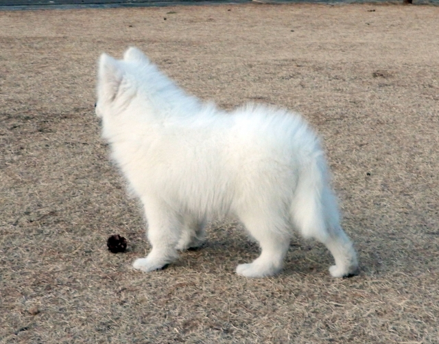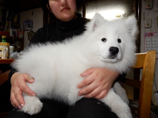| コメント | 色素良好、毛葺き良好、発育良好な上質なサモエドです。 父親はアイルランド生まれのJKCチャンピオンです。 |