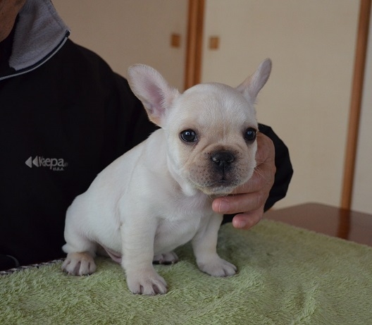 掲載されていた仔犬が可愛らしく見学を希望、西村さんよりすぐご連絡頂きました。見学に行った時には仔犬だけじゃぁ無く親犬や他の仔犬など沢山のフレンチにふれ合い、とても気さくな西村さんとお話ししていて幸せなひと時でした。帰りは近くの高速の入り口まで案内して頂きました。我が家に迎え入れて数日経ちますが元気で愛くるしくってたまらないです。(大阪府 女性)