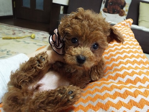藤澤さんからトイプードルの男の子を譲って頂きました。写真を見て一目惚れし、見学日に契約させて頂き、一緒にお家に帰ってきました。奥さんが対応して下さったのですが、とても親切な方でワンちゃん達への愛情が溢れていました。藤澤さんのお家で育てられたからこその愛嬌と元気溢れるワンちゃん達に本当に驚きました。初めて室内犬を飼う私達にもとても分かりやすく説明をして下さり本当に感謝しています。自宅に連れて帰って来てからも親切に連絡を下さり、出逢えて良かったと心から思っています。(兵庫県 女性)