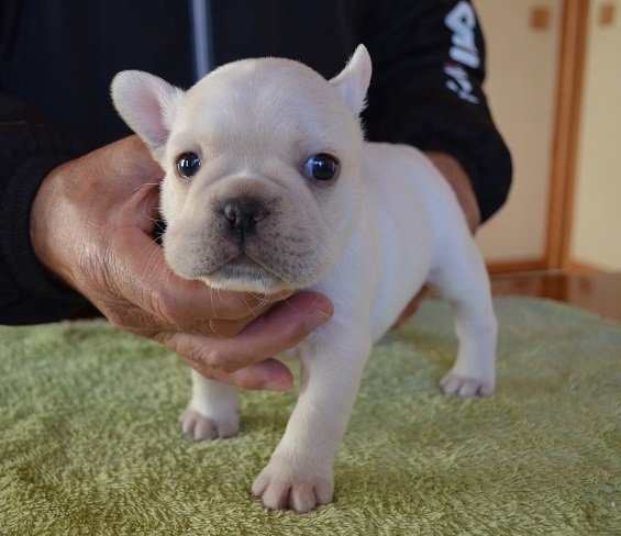 掲載されていた仔犬が可愛らしく見学を希望、西村さんよりすぐご連絡頂きました。見学に行った時には仔犬だけじゃぁ無く親犬や他の仔犬など沢山のフレンチにふれ合い、とても気さくな西村さんとお話ししていて幸せなひと時でした。帰りは近くの高速の入り口まで案内して頂きました。我が家に迎え入れて数日経ちますが元気で愛くるしくってたまらないです。(大阪府 女性)