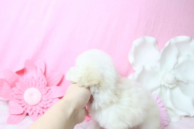 | コメント | 2月9日撮影 涙やけもなく真っ白♪ お鼻も短く、 お顔まんまるでとても可愛いです!!! 性格は人なつっこい子です。 2月9日現在 生後79日で体重460gです。 成犬時予想体重は1.2~1.6kg前後のTカップサイズ予想です。 父 1.2kg 母1.7kg 1回目のワクチンは接種済みです。 |
