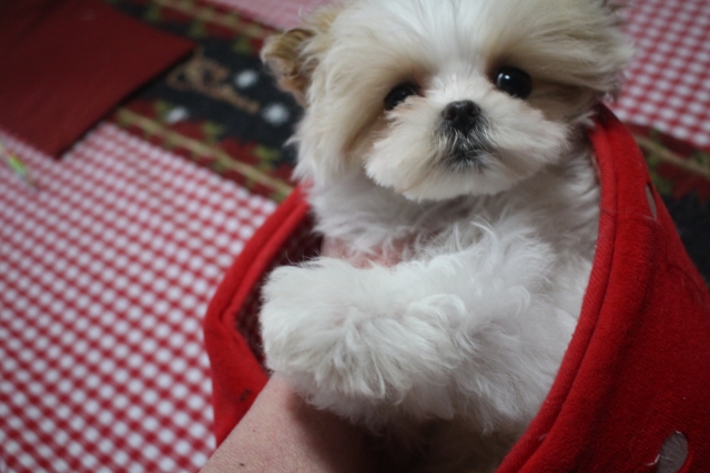 | コメント | お父さん マルチーズ 1,5kg お母さん プードル 2,5kg まだ小さいので又画像入れ替えていきます。 両親共とてもかわいい子なので、これからの成長が楽しみな子です。 少しお顔の左右に柄が、あります。 お渡しは3月始めからに、なります。 3月9日の画像入れ替えました。 |
