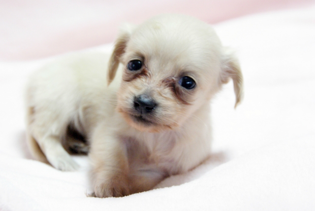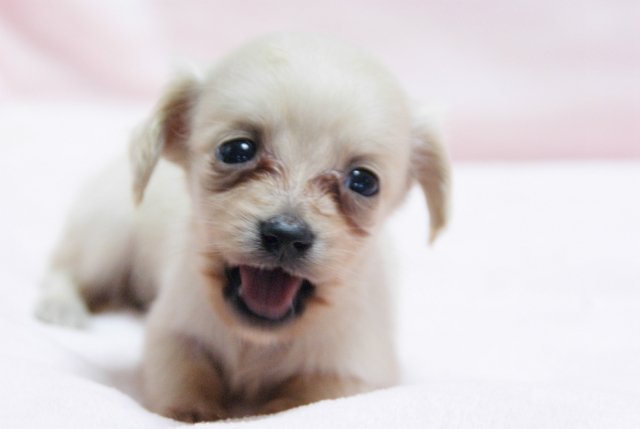 | コメント | 現時点で白に近いピュアクリームです。 とても小柄な子です。 ママ似の大きなタレ目が癒し系で愛らしい雰囲気! ピュアクリームと言っても遜色ない子ですが、色素がしっかりしており、お鼻も足裏のパッドの真っ黒です。 耳付が高く、幼さを強調するタレ気味の大きな目元は大きくなっても変わらなそうなので、いつまでもあどけないお顔になると思います。 温厚で人懐っこい子です。 |