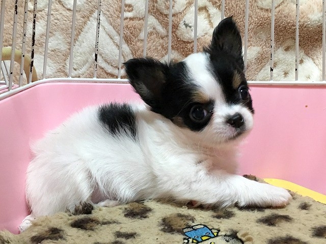 チワワ(ロング) ホワイト&ブラックタン ♀(女の子) 和歌山県【 ブリーダーズ 】
