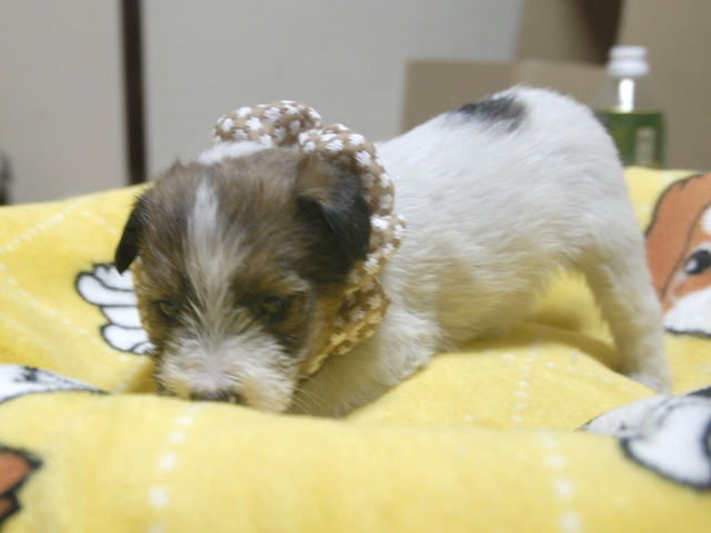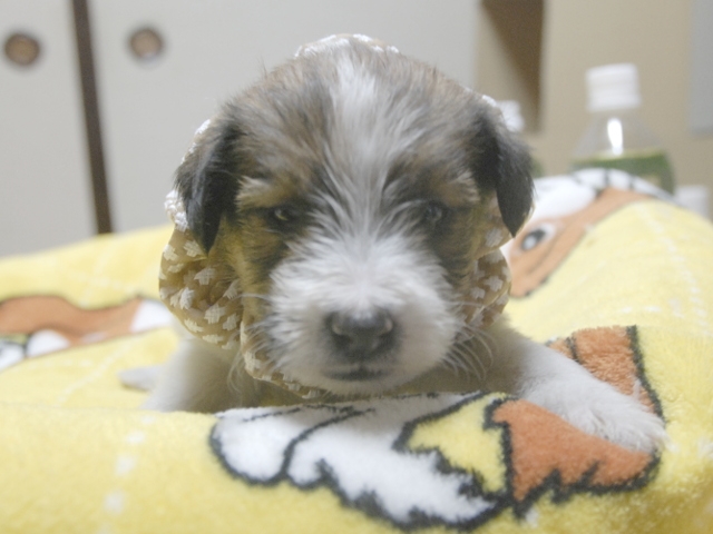 この度はとっても元気な子をありがとうございました。 見学の際は駅まで迎えにきていただき、説明もとても丁寧で安心しました。 空輸で送っていただき、ありがとうございました。 迎えてから一週間が経ち、家にも慣れて、へそ天で寝ています。 トイレトレーニングも、来た時から8割できていて、今ではほとんど失敗しなくなりました。 可愛く元気で、毎日元気に飛び跳ねています。(奈良県 女性)