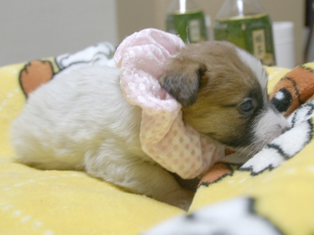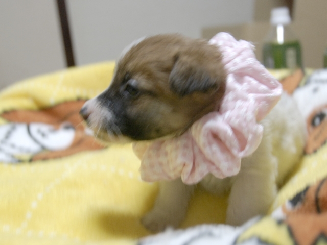 | コメント | お父さんJKCチャンピオン(原光一さん所有)、お母さんダンスちゃんから生まれたキュートな女の子です。 (ピンク白リボンちゃん) |
