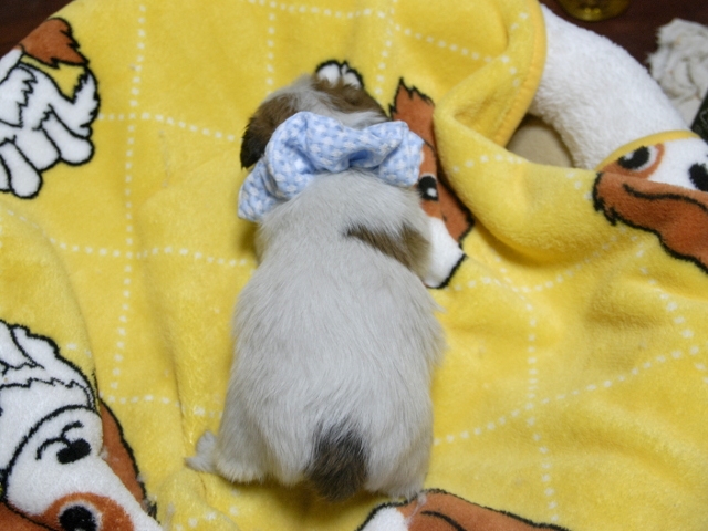 | コメント | お父さんJKCチャンピオン(原光一さん所有)、お母さんダンスちゃんから生まれたキュートな女の子です。 (青白リボンちゃん) |