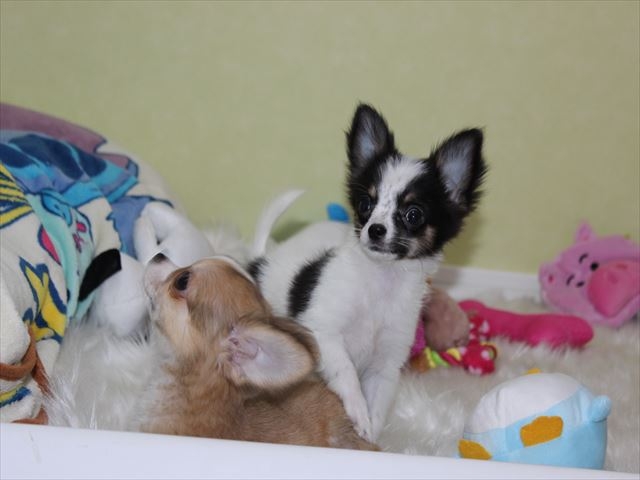 | コメント | 毎日3食の離乳食を モリモリ食べて元気いっぱい成長中です! 元気いっぱい走りまわって 姉妹で仲良く遊ぶお転婆な女の子です! ぜひ彼女に会いに来てあげてください(^^♪ 御縁があった場合のお迎え方法は色々選択肢がありますので 遠方の方も是非お問い合わせ下さいませ。 素敵な飼い主様のご家族の一員に迎え入れていただけることを この子とともに楽しみにお待ちしております。 宜しくお願い致します。 *ブリーダー様、動物販売業者様への販売は行っておりませんので 御了承下さいますようよろしくお願い致します。 |