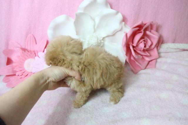 | コメント | 2月22日撮影 お顔まんまるで可愛い子です^^ 性格は人なつっこい子です。 2月22日現在 生後73日で体重570gです。 成犬時予想体重は1.7~2kg前後のTカップ~ 小ぶりタイニーサイズ予想です。 父 1.2kg 母1.9kg 1回目のワクチンは接種済みです。 |