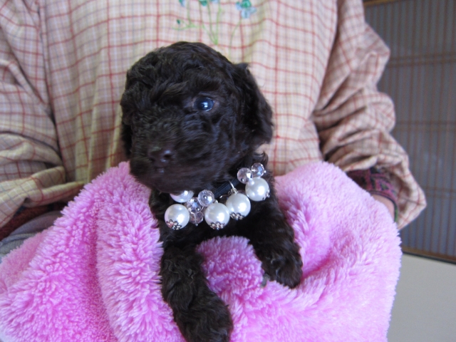 チャコと名付けたこの子の引き取りが遅れたのは、私の都合でした。足の故障から寒い時期に座ることができず悩んでいると、{いつでもいいですよ}と言っていただき名前を決めて呼んでくださり、.途中経過の様子や写真を送ってくださいました。3月3日に安心して迎えました。 とても元気で可愛くて何をしても許してしまいそうです。 夜泣きも一晩目だけで朝まで寝てます。お散歩に行けるようになるのが待ち遠しいです。チャコが来てからも金子さんにはいろいろご指導いただいています。チャコとの出会いに感謝しています。有難うございました。 (広島県 女性)