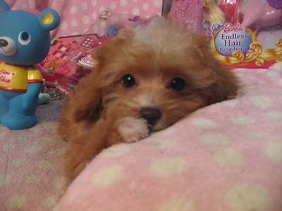 | コメント | お父さん・・チワワ お母さん・・プードル まんまるお目目が可愛い女の子です 足が短いドワーフ体系でよちよち歩きが 愛嬌が有って可愛らしいです 毛質は緩やかなカールでふわふわです 抜け毛はほぼ有りません 胸、頭、顎、白い毛が有り可愛いポイントです 全部の手足に白い手袋をしていて 可愛いです 活発で元気な性格です 大人になって2.5㎏~3㎏ 以内の可愛いサイズの仕上がり予想です 健康診断済みです 1回目、2回目のワクチン済みです |