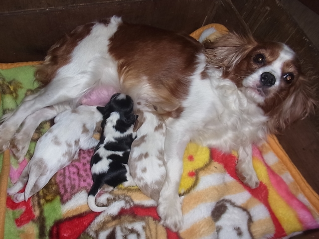 橋本さんはキャバリアのプロでとても冗談大好きで初めての電話の際から毎回楽しくお話させていただきました。待望のお迎えの際も先輩キャバリアちゃんたちが賑やかに迎えてくれて(キャバリア祭り笑)、子犬のパパママにも会わせていただき感激しました。ちなみに橋本さんちのキャバリアちゃんたちはみんな美男美女でかわいい子ばっかりです。橋本さんの優しくキャバ愛溢れるお人柄も決め手にもなりました。子犬は夜鳴きもせず当日から元気いっぱいで毎日おてんば発揮してます笑、これからもずっと大切に育てていきます!また子犬が落ち着きましたら橋本さんとキャバちゃんたちに会いに素敵な尾道に里帰りさせてもらいたいなぁと企んでおります笑、本当にありがとうございました! (京都府 女性)