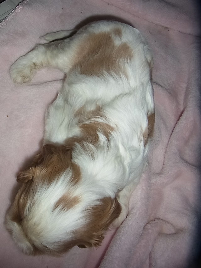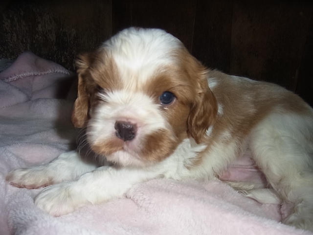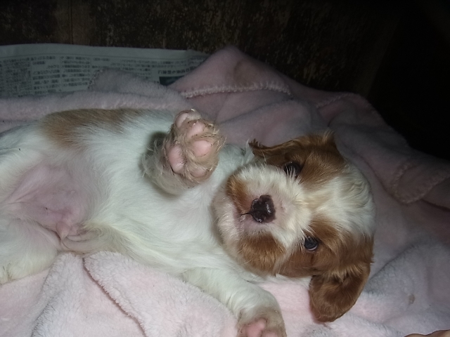 | コメント | 父親 トライ 母親 ブレンハイム マズルが太く詰まっていて、口の左右上にブチがあります。 キャバリア大好き、もしくは関心をお持ちの方の気軽な問い合せをお待ちしています。 遠方の方もお気軽にどうぞ!! |