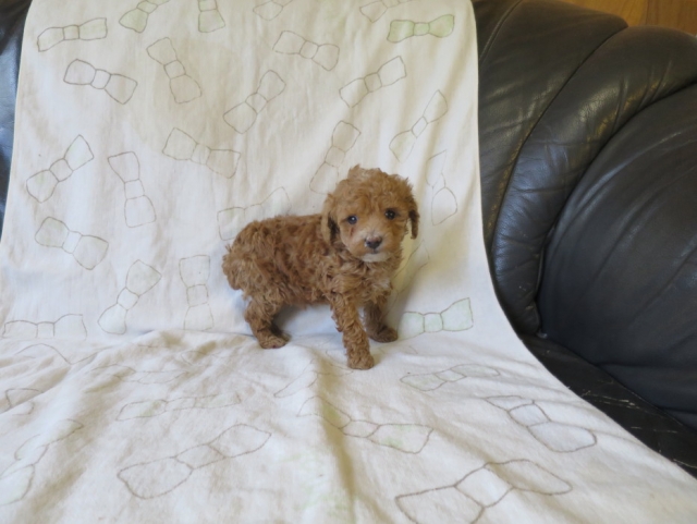 | コメント | お父さんはアプリ ティーカップの可愛い子 お母さんはレッド 人懐っこく 可愛い子です 3/12の体重は675g 多分タイニーサイズで収まると思います かみ合わせは正常ヘルニアもありません 獣医の診断ワクチンを接種し お渡しします |