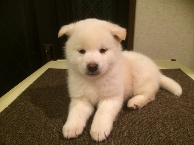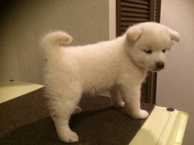 毛色は真っ白本当にきれいですよ。これがまさしく白柴です!