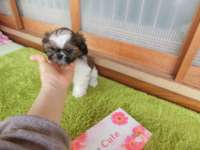 | コメント | パパ:ゴールド&ホワイト3.5k ママ:ゴールド&ホワイト3.8k ※月齢的に社会性も十分身に着けて人にも犬達にも友好的で安心お迎え、お散歩デビューも直ぐからできます シーズはーは犬種的な特徴で皮膚が弱い傾向にありますが、この子の家系はトラブルの無い健康的な皮膚をしていて全国にお迎え兄弟達も健やかに過ごしておりますので安心してお迎えください。 家庭の中で育っておりますので人懐こく情緒が安定、兄弟仲間とも仲良く過ごしており育て易い性格の子です。 ※ 素直で扱い易い癒しの子犬は飼い始めからの躾が重要なので十分にアドバイスいたします(遠隔のお迎えの方でも安心:面会時もお電話・メール) ※飼い始め応援!・・スターターグッズは、仕入価格のままお譲り 始めての方でも直ぐに飼い始めることができます ※ 生体代と別途代(空輸等交通費とワクチン代)全てに於いて消費税をいただいておりません。 ●ブリーダーから1カ月100%動物保険プレゼント(シェアNO.1のアニコム損保動物保険代理店ブリーダー) ★性格 穏やか 無駄吠えも無く人懐こい 近親で交配しておらず疾病になり難く賢い リビングにて育ち人慣れして扱い易い子 兄弟仲間と遊び育る環境で社会性もあり多頭飼いにも向いていて情緒が安定 ★容姿 左右対称カラーコロンとコインらしい子 白のマフラーにボディは茶のチョッキを着ているようです 毎日のドッグランで足腰丈夫安心お迎え シーズーの犬種的によくある皮膚のトラブルで生涯病院に通うのはよく聞くケースですが、家系的に皮膚が強く健康安心です ★健康状態・・良好 混合ワクチン済・健康診断良好・駆虫済でのお渡し (健康診断書とワクチン証明書有添付)親元に自然に乳離する迄、充分居て愛情・成長期の免疫もしっかり貰っていて心身共に安定しています。 ★環境・・・仲間・私達人間とお迎えまでずっと一緒に生活し豊かな表情のある穏やかで社会性のある性格が培われています。当方と同じ環境と言える人の生活にも直ぐに馴染みます。 親から早く離されたり、兄弟仲間と遊んだ経験の少ない子は突然理由なくキレたり、獰猛だったりと昨今、問題視されています。 その点当方出身の子犬は、人慣れしていて獰猛だったりかんしゃくを起こすことも無くお迎え後甘えて直ぐに慣れてくれると喜びの声を頂いております。明るく元気ですが、お隣等が近いマンションにも適した穏やかさです。 ★躾 ゲージの中でのトイレシートでの躾済後のお渡し。お迎え後の違った環境でのお家での躾は、アドバイスします。 *アニコム動物保険の代理店 (動物保険会社では、倒産した時に国が保証する2つの保険会社の1つ)手厚い補償で好評の日本最大の動物保険会社です。(ブリーダーショップとしては、当店が唯一認定店)・・・アニコム1ヵ月100%動物保険プレゼント。 ※ 動物取扱士・家庭犬トレーナー・トリマー・小動物看護士・ペット繁殖指導員の居るブリーダーショップ ★アフターフォロー:繁殖直売のブリーダーショップで、中間業者やペットショップに渡すことをしないで、一般ご家庭の飼い主様にのみお渡ししています。 きちんとお迎え先が分かることにより一生に渡り心身共の健康に貢献していきたいと願っています。 <プレゼント> ★ アニコム100%1ヵ月保険 ★ 躾のDVDとプリント ★ スターターグッズ わんこ母子手帳・フード・ブランケット ※ 飼い主様準備:ゲージ(手配のお手伝い無料)・トイレシート・フード皿・ベッド・給水器等 (当店ご来店お迎えの場合、子犬に適したゲージ・ベッド・給水器等をネット最安値で購入したその価格のままで上記グッズをお譲りしています。又、歯の生え変わる月齢まで適したハードキャリ―も最安値価格です) ※始めての方でも安心・いろいろとアドバイスいたします。 <当舎の特徴> ★ 心身共に管理できる少数の子犬を育てています。 ★ 多種カード会社認定店・・・VISA・Master・UC・JCB・AMERICANEXPRESS・Nicos・Diners・DC・UFJ 決済手数料の5%は当店がお支払いサービスとなっています。 ★ 多頭飼いや2頭目をお迎えの方にも適した社会性を身につけた子犬をお譲りしている実績有り。 ★ 引越や旅行・夏・冬等の計画でお迎え延期でも無料でお預かり。 ★ ワクチンと健康診断書添付 ★ ♂犬は当方誕生子犬を残さず、他舎の子犬を迎え育て近親交配が無い。よって欠陥の子犬が誕生リスクが少ない ★ 子犬に問題が起きやすい老犬ではなく、若い両親でブリーディング。 ★仲介販売・・空港等でお迎えの際に中間業者が当方代理で子犬を引渡しします 仲介費用は地域により異なりますが、半額は当方が負担いたします。 (お迎えあの際に約15,000円前後の半額を負担程度) 対面され、万が一お気に召さずお迎えを断ることも可能ですが、仲介手数料・送料の往復分は発生しており申し受けますのでご了承ください。 ★感謝・・・当舎の交配犬は、若いうちに里親様にお譲り(当方からお迎え又その方の紹介・近隣方:面接の上、可愛がっ