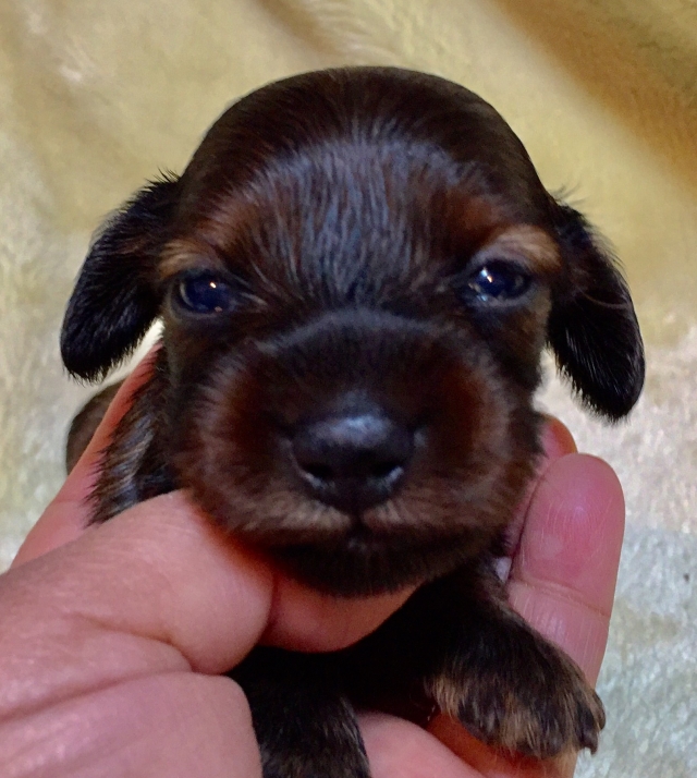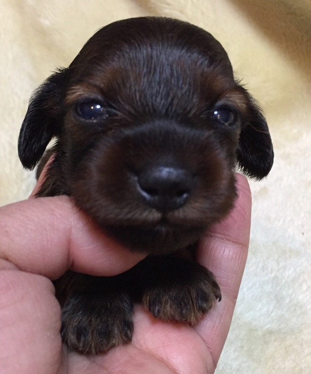 現在カニヘンダックスを飼っており、この度2頭目が欲しいと思っていたところ、細田様の子犬が目に留まりました。以前よりドイツダックスに興味があり、実際お宅に伺って直接子犬また両親犬を見ることができその毛色の素晴らしさに感動しました。またお話しを伺い犬に対する強い思い、深い愛情を持って育てられている事が感じられましたので、その場で即決譲渡させて頂くことになりました。 また、『もし何かありましたら24時間いつでも御連絡下さい』と… 子犬は健康的で元気一杯、人懐っこい性格でした。 ドイツダックスに興味のある方 おすすめのブリーダーさんです!(静岡県 男性)