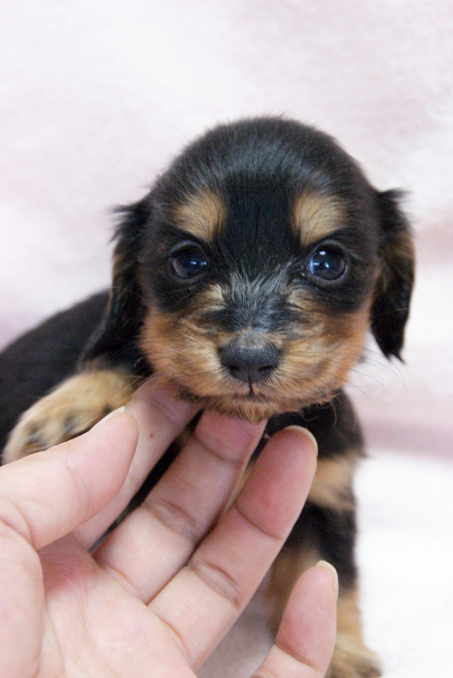 | コメント | あどけないお顔をした子です。 この子も大きなおメメですが、どちらかというとキレイ系のお顔になりそうです。 タンがハッキリクッキリ入っているので気の強そうな頑固そうな顔つきになってしまいますが、ナカミは甘ったれで温厚です。 |