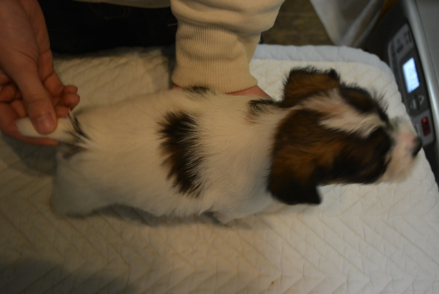 | コメント | 良血統の男の子 父親JKC.CH 5Kg 父方祖父JKC.CH 母親JKC.CH直娘5.0Kg 母方祖父JKC.CH 骨量も多くがっしりとした低重心の男の子です。 毛質はブロークンまたはラフ予想。 性格明るく陽気で人懐っこいです。 現在離乳食もりもり食べて育っています。 実物はとてもかわいい顔しています。 血統的に攻撃的な性格はありません。 現在のところ欠点はありません。 一度見ていただければきっと気に入っていただけると思います。 見学は土日祝日のみと限りがありますが見学の連絡をお待ちしております。 見学可能日は、3月18日23日25日26日27日4月2日15日16日22日29日30日 見学は事前にご連絡ください。アポなしはご遠慮ください。 先着順にて決めていただいています。 |