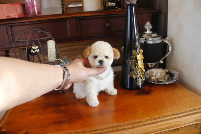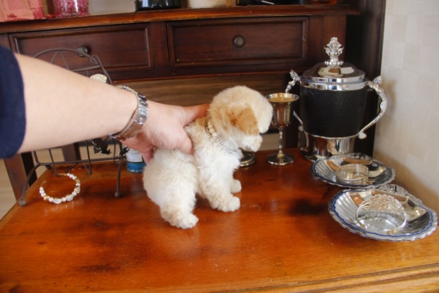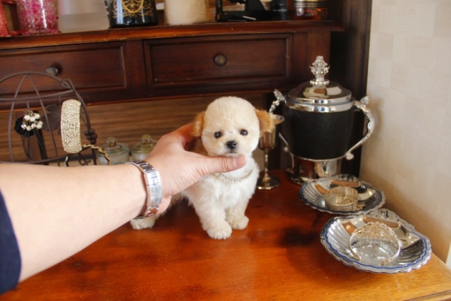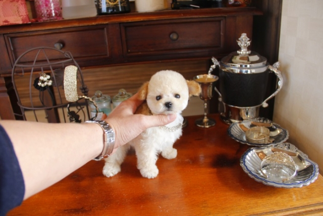 | コメント | 父犬1.4kg 母犬1.9kg とうとう、この子を掲載する日が来てしまったと思っています。 間違いなく最高のティーカップの上、このモデルクラスのトップに君臨する 女王様・・・・ 足は見ての通りの短いドアーフタイプ 毛質は細かい毛巻きにびっしりと埋め尽くされた毛量 毛色は成犬になっても年を感じさせない金色に近いクリーム 鼻先は短くテディベアの似合いすぎるお顔 瞳は大きく丸く見つめた瞬間に一目ぼれ 性格は非常に大人しく無駄吠えを躾することなく ベットで優雅に寝る姿さえ気品に満ちております。 本物の貴方様だけに送る、だれもが振り向く最高の子を… VISA Master Americanexpress カードでのお支払い可能でございます ペットショップやオークション出しのブリーダーと違い欧米のブリーディング同様、親や兄弟と社会期を過ごさせることで 人間と暮らした時にスムーズに暮らせるようにしております。 親犬達も家族として朝7時からドックランで遊び、全室冷暖房完備の部屋で過ごし、専門のスタッフや専門学校の方々と協力し合いながら 衛生管理に努めております。 犬舎の特徴としましては、東京や神奈川近郊の為マンションのお客様が8割を占めます。その為小さな1キロから2.8キロまでに収まるように、 |