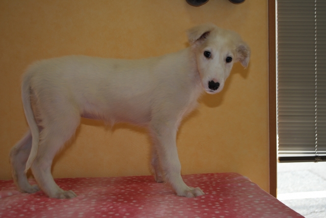| コメント | 将来が楽しみなボルゾイです。 身体は真っ白でおとなしい子です。 現在はもっと成長しています。 ワクチン2回分(10,000円)は別途お願い致します。 |