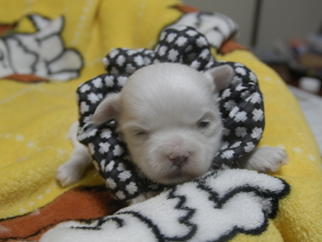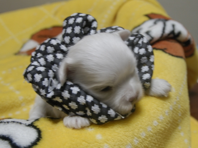 | コメント | とても可愛いダンディーな男の子です。(黒白リボン君) お父さんビアンコ君、お母さんシロンちゃんです。 元気に兄妹仲良く育っています。 |