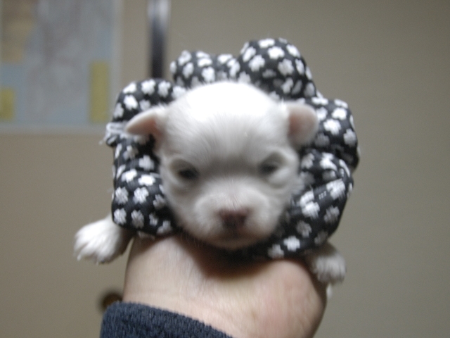 この度はとっても元気な子をありがとうございました。 見学の際は駅まで迎えにきていただき、説明もとても丁寧で安心しました。 空輸で送っていただき、ありがとうございました。 迎えてから一週間が経ち、家にも慣れて、へそ天で寝ています。 トイレトレーニングも、来た時から8割できていて、今ではほとんど失敗しなくなりました。 可愛く元気で、毎日元気に飛び跳ねています。(奈良県 女性)