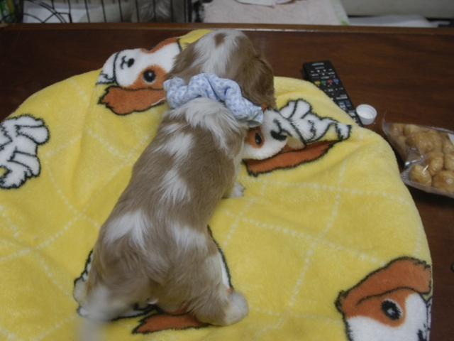 この度はとっても元気な子をありがとうございました。 見学の際は駅まで迎えにきていただき、説明もとても丁寧で安心しました。 空輸で送っていただき、ありがとうございました。 迎えてから一週間が経ち、家にも慣れて、へそ天で寝ています。 トイレトレーニングも、来た時から8割できていて、今ではほとんど失敗しなくなりました。 可愛く元気で、毎日元気に飛び跳ねています。(奈良県 女性)