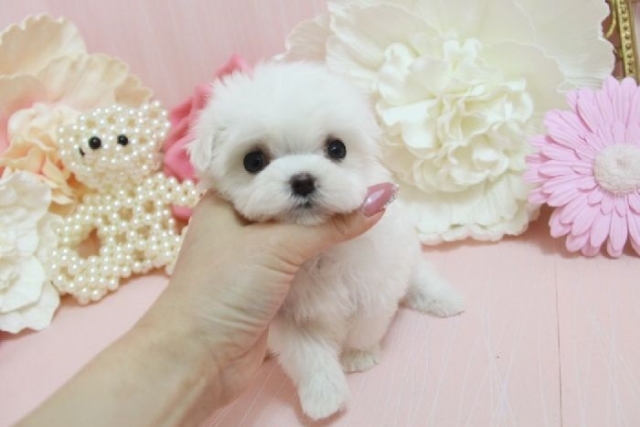 | コメント | 3月19日撮影 お目めの大きな お鼻も短くお顔まんま~るなマルチーズ女の子♪ 性格は明るく人なつっこい子です。 無駄吠えなどもなく飼いやすい子です。 3月19日現在 生後60日で体重380gです。 成犬時予想体重は~1.6kg前後の極小サイズ予想です。 父 1.2kg 母1.7kg 1回目のワクチンは接種済みです。 |