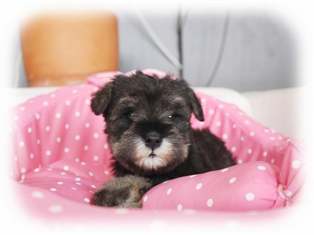 シュナウザーを主力にされているブリーダーさんだと認識しており、ボスちゃんはどうかなあと正直不安でしたがとても可愛く健康的なボスちゃんをいただきました。 掲載されていた写真より実物は想像以上に可愛くて即決し見学させていただいたその日に連れて帰りました。連絡をして、翌日行きますぅって勝手な申し出にも関わらず敏速かつ親切に対応して頂き大満足です。契約に対しても一つ一つ丁寧に説明してくださり、わかりやすかったです。この度は可愛いボスちゃんとのご縁をいただき、本当に有り難うございました。 (大阪府 女性)