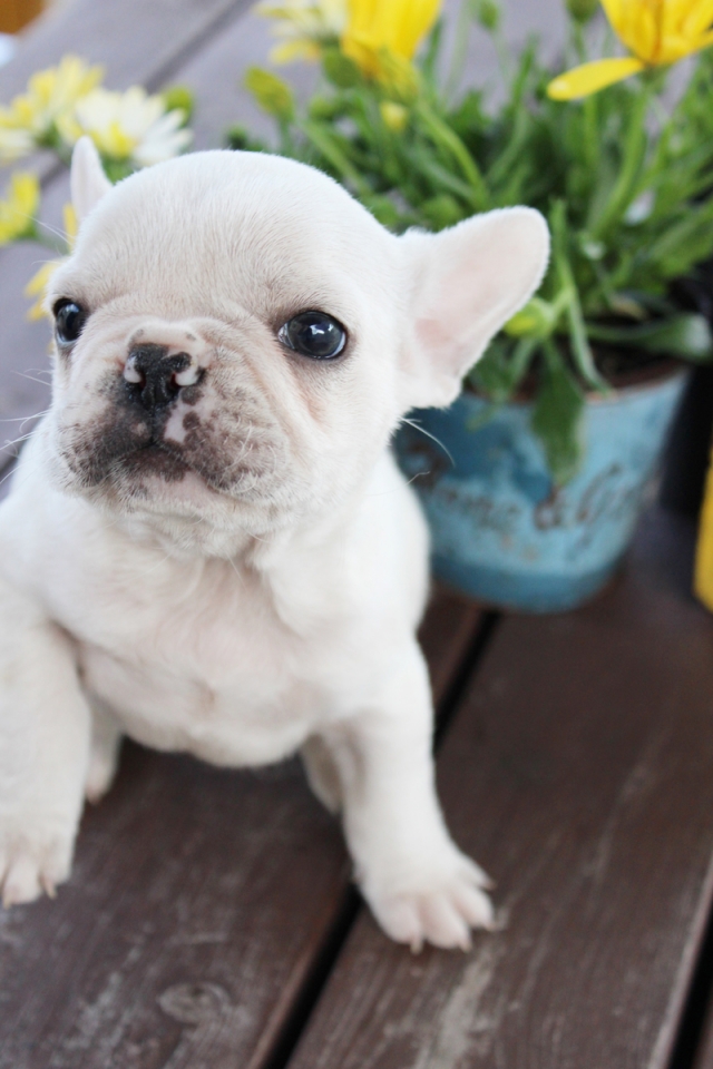 | コメント | 両親ともに10kg程度の小ぶりなフレンチです。 性格の穏やかさ、お顔の可愛らしさを追求してブリーディングしました。 白に近いオフホワイトのキレイなカラーの子です。 アイラインバッチリ!肉球も真っ黒な色素のしっかりした子で、頭部の張った男の子です。 崩れのない、かわいらしさそのままで育つと思います。 当犬舎のフレンチは育てやすさ=飼いやすさ、お顔の可愛らしさを重視しております。 穏やかな性質のフレンチをブリーディングするため、選択交配をしております。 パパは他犬舎ご愛犬のクリーム。 ママはとても大人しく従順な性格のブリンドルです。 ご購入後のアフターはモチロン、よりイイ子に育てるためのアドバイスをしっかり行っております。 イイ子に育てることで様々な意味合いで周囲から「可愛いね」と称賛をいただくことでオーナー様により可愛がっていただけるよう努力を重ねております。 *お値段は時価なので、成長とともに評価が上がれば予告なく値上がります。 |