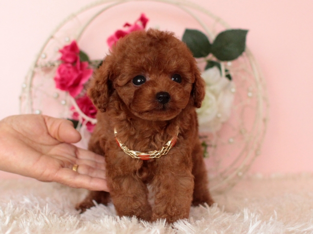 | コメント | ■父 レッド 1.2キロ ■母 レッド 2.0キロ ■体重 3/5現在 400グラム ■成犬時予想 極小ティーカップ 毛量・巻毛たっぷりの小さな天使!! お鼻も体も足も極限まで詰まった可愛い子☆彡 手の平サイズの極小ちゃん☆彡 クリクリお目目は魅力に溢れて輝いております!! おっとりした性格で抱っこ大好きとっても甘えん坊☆ 人懐っこく愛嬌のある癒し系☆ 愛くるしい可愛さに思わず抱きしめたくなりますよ~♪ 小さくても構成がとても良く 歩様の美しさは格別です。 食欲旺盛ですので初めての方でも育てやすいです(^-^) ★ワクチン 接種済み ★PRA ノーマルクリアー 発症しません!! ★健康診断済 良好です!! |