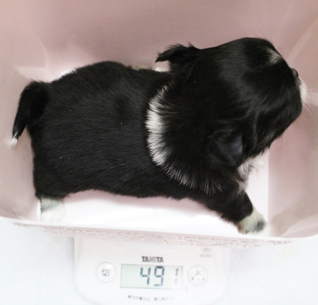 | コメント | 母犬 ブラックホワイト JKCCH直子 父犬 ブラックタン&ホワイト JKCCH直子(大阪有名犬舎様所有犬) ブラックホワイトのかわいい女の子です。 順調に成長しております。 現在の所欠点はありません。 羽田空港または神奈川県でのお受け取り可能です。 その他の地域の方ご相談ください。 |