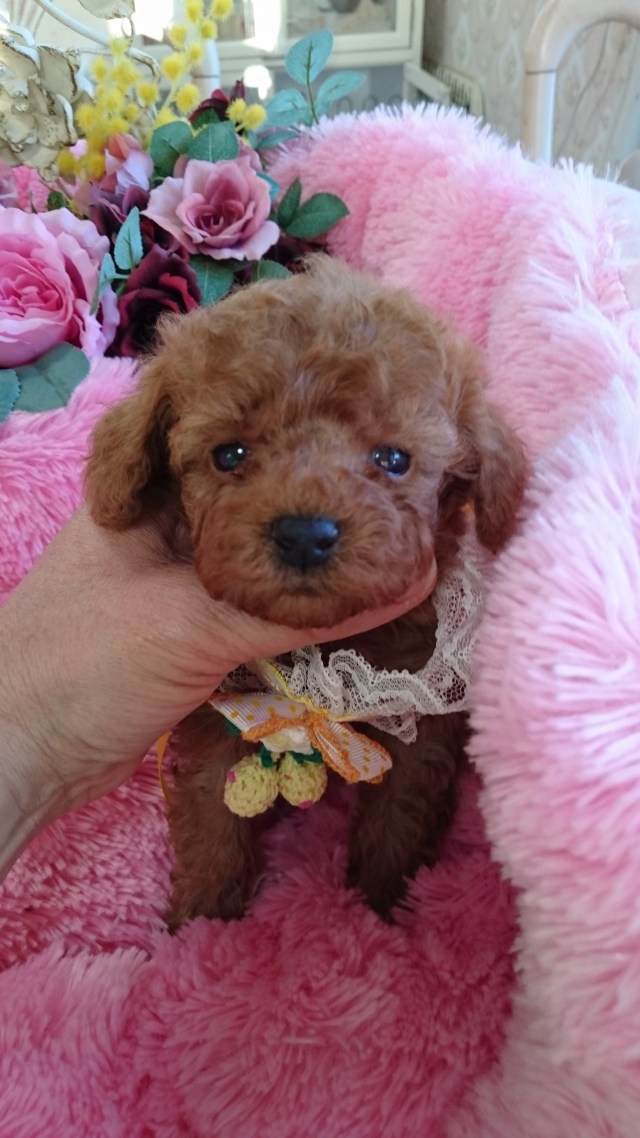 | コメント | 父親 レッド 2.3kg 母親 レッド 2.6kg 小さなお母さんから可愛い男の子が生まれました。 将来 俗タイニーサイズ予想の可愛い子です。 健康診断もして良好です。 現在おトイレ躾をしています。 一生大切に育てて下さる飼い主様 ご連絡お待ちしています。 |