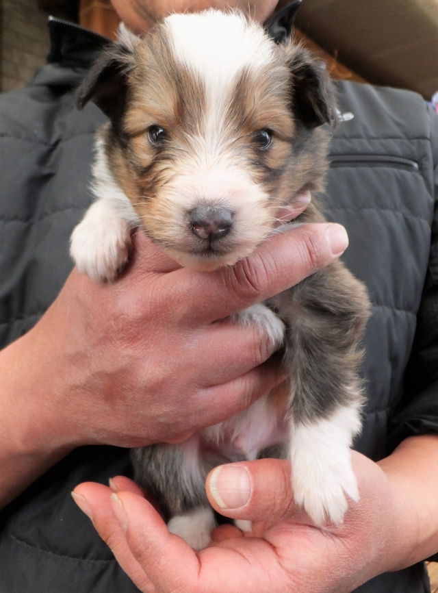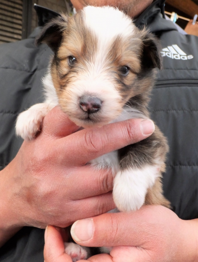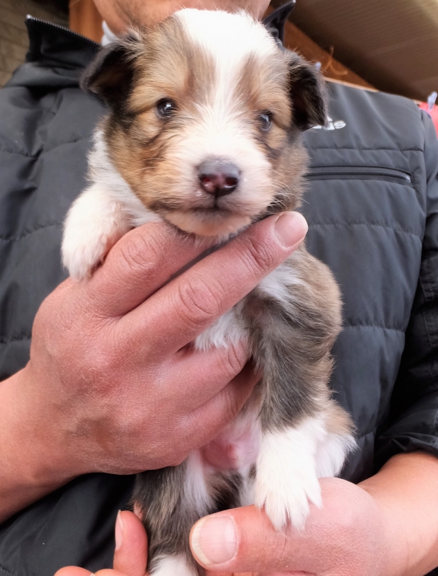ネットブリーダーズを拝見し、バイブルーで青い目の子犬「銀くん」に一目ぼれしました。また、平山ブリーダー様の口コミがとても良かったこともあり、不安なく連絡をさせていただきました。お問い合わせ後すぐに丁寧な返信をいただき、見学の日程もスムーズに決まりました。 実際に伺うと、かわいいたくさんのシェルティちゃん達に迎えられ、たくさんの質問にも丁寧に答えてくださり、大変安心しました。お迎えした銀くんは、最初の1日はおとなしく心配になるほどでしたが、2日目からは甘えたり鳴いたりと元気を取り戻し、とても可愛い姿を見せてくれています。 平山ブリーダー様の元で大切に育てられてきたことがよく分かり、銀くんをお迎えできて心から良かったと思っています。 素敵なご縁をありがとうございました。(福島県 女性)