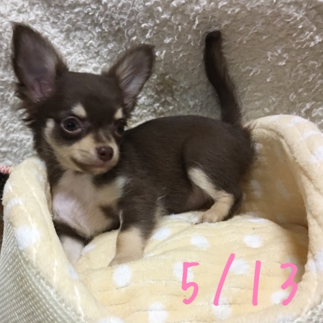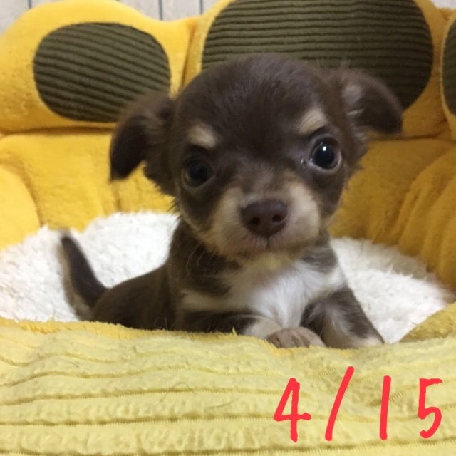 | コメント | ママはレッドのダグちゃん パパはチョコタンのアランくん 綺麗なお顔の小ぶりな女の子! 成犬時予想体重2~2.5kg 3/25離乳食始めました! 初回ワクチン接種を4/19に接種しました! 2回目のワクチン接種は5/14ごろを予定しています。 体調を整えてからのお引き渡し可能です。 お引き渡し時に愛用のベットもしくは毛布、食べている餌1キロ、おもちゃをお渡しします。 |