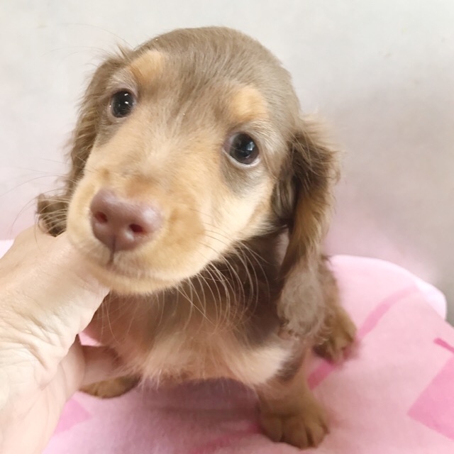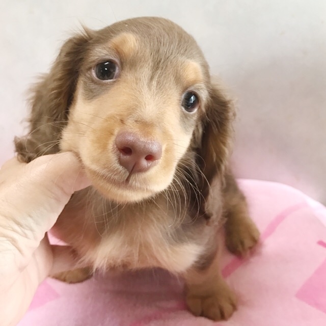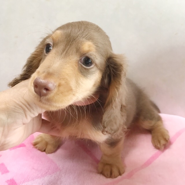 申込から受け取りまでほぼ毎日、仔犬の写真、動画、報告を送って下さいました。縁あって我が家にやって来たのはそれはそれは可愛いい、真にダックスらしく好奇心にあふれ、跳ねまわるほどの元気な仔犬です。大切に育ててくれたに違いありません。このサイトで榎田ブリーダー様に出会って、そして我が家のお姫様に出会えました。ブリーダーズ事務局様、榎田ブリーダー様にも実に細やかな配慮を頂き、感謝で一杯です。有難う御座いました。(北海道 女性)