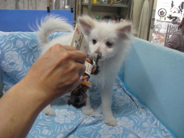 | コメント | 可愛いポメちゃんの子犬です(^^)/ 体はホワイトですが耳にクリームが入っています 子供の毛が抜けて大人の毛が生える時期なので、少しみっともない感じですが、これから大人の毛が生えると見事になります とても懐っこい性格ですのですぐに慣れます 生後5ヶ月になるのでワクチンも接種済みです 見学当日に気に入られた場合、連れて帰る事もできます。 ★見学のご予約は随時受け付けております。 どんな小さなことでもお気軽にお問合せ下さい。 |