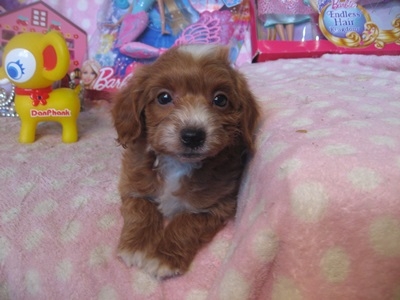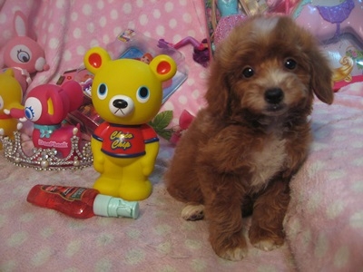 | コメント | お父さん・・チワワ お母さん・・プードル 大きな真ん丸なお目目で 優しいお顔の可愛い男の子です 頭と胸、足先に白い毛が有り 面白い色合いで将来どの様に 変わっていくのかが楽しみです お顔の白い毛もサンタさんの様で 可愛らしいです 頭の毛はストレートに近いですが 体の毛は緩やかにカールしていて ふんわりしています 明るく元気一杯で 少しシャイですが 人懐っこい子です 大人になって2,5㎏前後の仕上がり予想です |