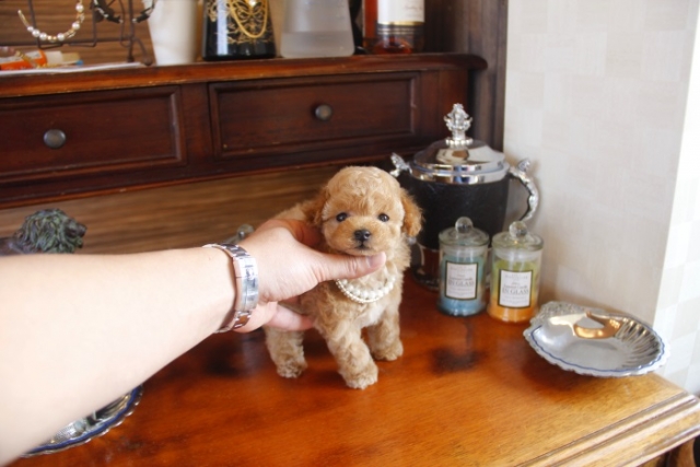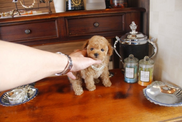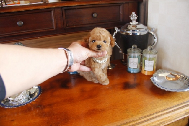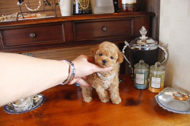 | コメント | 父犬1.6kg 母犬2.1kg 代々、我が家に残してきた子達の兄妹です。 全てティーサイズの可愛い血統です。 自信をもって後悔させません。 お早目にお問合せ下さい ペットショップやオークション出しのブリーダーと違い欧米のブリーディング同様、親や兄弟と社会期を過ごさせることで 人間と暮らした時にスムーズに暮らせるようにしております。 親犬達も家族として朝7時からドックランで遊び、全室冷暖房完備の部屋で過ごし、専門のスタッフや専門学校の方々と協力し合いながら 衛生管理に努めております。 犬舎の特徴としましては、東京や神奈川近郊の為マンションのお客様が8割を占めます。その為小さな1キロから2.8キロまでに収まるように、 母犬を2.8キロまでと決めてブリーディングをしている為、後で極端に大きくなる子はいません。 瞳の丸く大きなところやマズル(鼻先)が短いもの特徴で、父犬、母犬、全て私が全国の可愛いトイプードルを一頭、一頭厳選して親犬としてブリーディングした子犬のみを掲載しております。 こだわりとしては、お客様がお迎えされた後、その子がTV出演、雑誌やカレンダーのモデルとして活躍の場が増え我が家を忘れないでいてもらいたい為、 本気でこだわりを持って常にトイプードルを飼うなら此処だと皆様全員に思われる犬舎でありたいと思います。 ありがたいことに今では、雑誌やTV出演、カレンダーなど多くの出身トイプードルちゃんたちが可愛く撮影されお客様からも喜びの声を頂いております。 我が家は35頭の小さな犬舎ではありますが、頭数が多いところでは管理が行き届かない、PRA若年性白内障などの遺伝性疾患の発症がないように努めております |