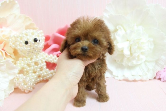 | コメント | 4月3日撮影 濃いめのレッドです! 小さいので、まだ毛量は多くないですが これからちゃんと増えてきます^^ お鼻も短く、色素も濃いので お目め大きめで可愛いです! 性格は人なつっこい、明るい子です。 4月3日現在 生後73日で体重370gです。 成犬時予想体重は1.7~2kg前後のTカップ~ 小ぶりタイニーサイズ予想です。 現在はとても小さいのですが、お母さんが小ぶりタイニーサイズ ですので、このサイズでご紹介させて頂きます^^ 父 1.5kg 母2kg 1回目のワクチンは接種済みです。 |