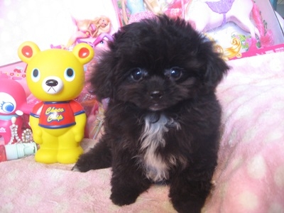 | コメント | お父さん・・チワワ お母さん・・プードル お目目がぱっちりしていて はっきりしたお顔立ちの可愛い子です 毛質は緩やかにカールしていて 毛量も有りふわふわです お鼻が短く詰まっていて 幼いお顔立ちで大人になっても あかちゃんの様なお顔だと思います 活発な元気な明るい子です 胸にネクタイの様に有る白い毛と 後ろの両足の先にも白い毛が 有り可愛いポイントです 大人になって2㎏前後の 小さい可愛いサイズの仕上がり予想です 健康診断、1回目のワクチン済みです |
