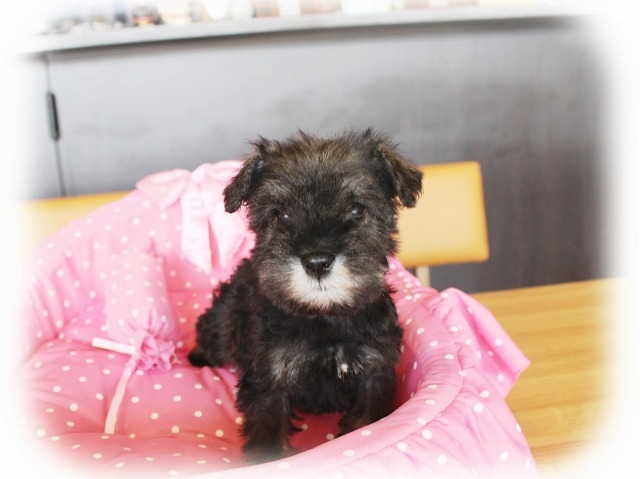 シュナウザーを主力にされているブリーダーさんだと認識しており、ボスちゃんはどうかなあと正直不安でしたがとても可愛く健康的なボスちゃんをいただきました。 掲載されていた写真より実物は想像以上に可愛くて即決し見学させていただいたその日に連れて帰りました。連絡をして、翌日行きますぅって勝手な申し出にも関わらず敏速かつ親切に対応して頂き大満足です。契約に対しても一つ一つ丁寧に説明してくださり、わかりやすかったです。この度は可愛いボスちゃんとのご縁をいただき、本当に有り難うございました。 (大阪府 女性)
