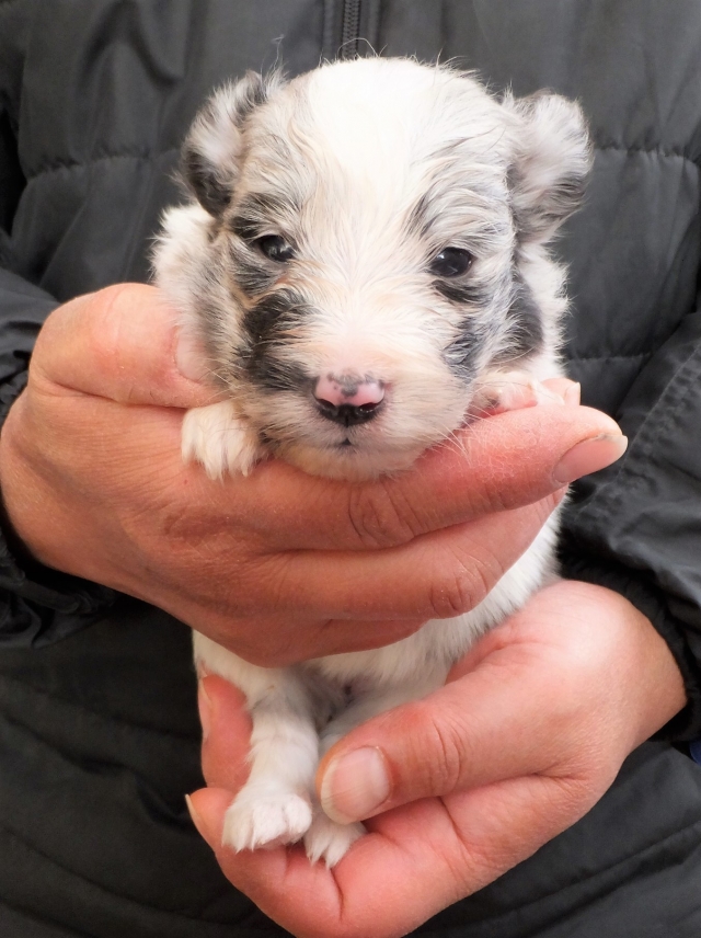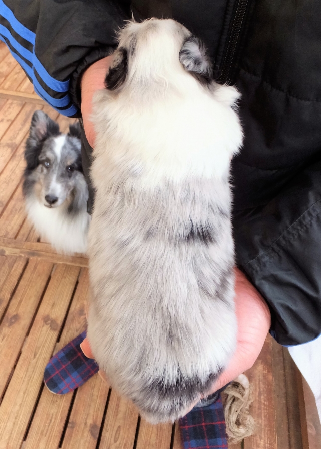 ネットブリーダーズを拝見し、バイブルーで青い目の子犬「銀くん」に一目ぼれしました。また、平山ブリーダー様の口コミがとても良かったこともあり、不安なく連絡をさせていただきました。お問い合わせ後すぐに丁寧な返信をいただき、見学の日程もスムーズに決まりました。 実際に伺うと、かわいいたくさんのシェルティちゃん達に迎えられ、たくさんの質問にも丁寧に答えてくださり、大変安心しました。お迎えした銀くんは、最初の1日はおとなしく心配になるほどでしたが、2日目からは甘えたり鳴いたりと元気を取り戻し、とても可愛い姿を見せてくれています。 平山ブリーダー様の元で大切に育てられてきたことがよく分かり、銀くんをお迎えできて心から良かったと思っています。 素敵なご縁をありがとうございました。(福島県 女性)
