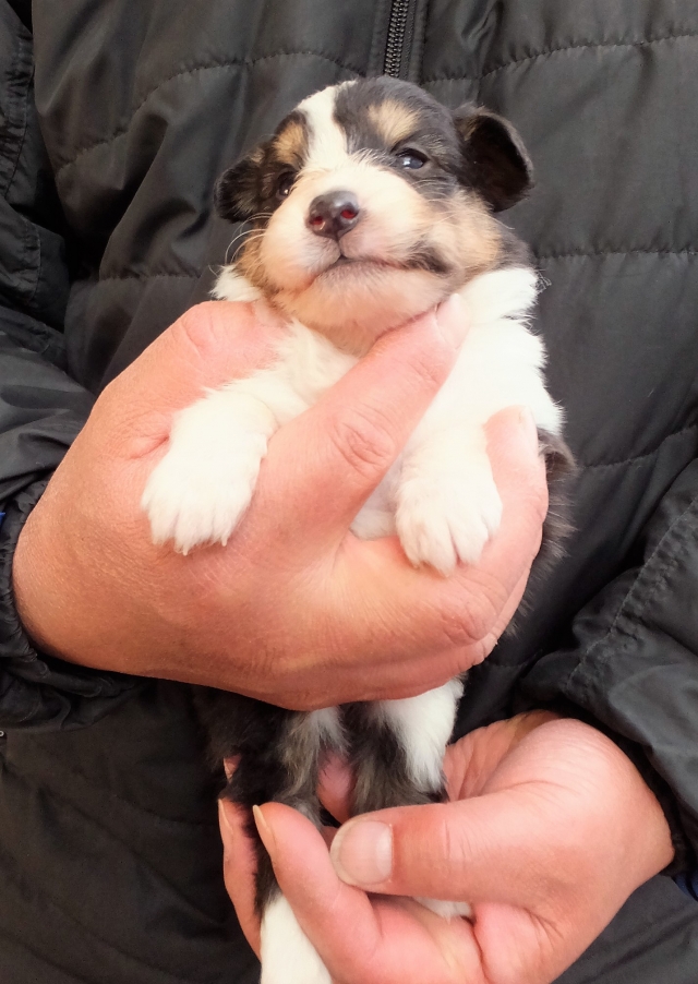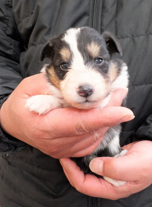 | コメント | 元気にすくすく成長中です。 特に欠点は見当たりません。 まだお鼻がピンクですが次第に黒くなります。 お父さん犬 JCCチャンピオン お母さん犬 JCC賞歴あり 健康で明るい性格の両親犬から生まれました。 両親はもちろん親族犬も多数在舎しておりますので見学可。 お渡し時期は5/10頃になります。 |